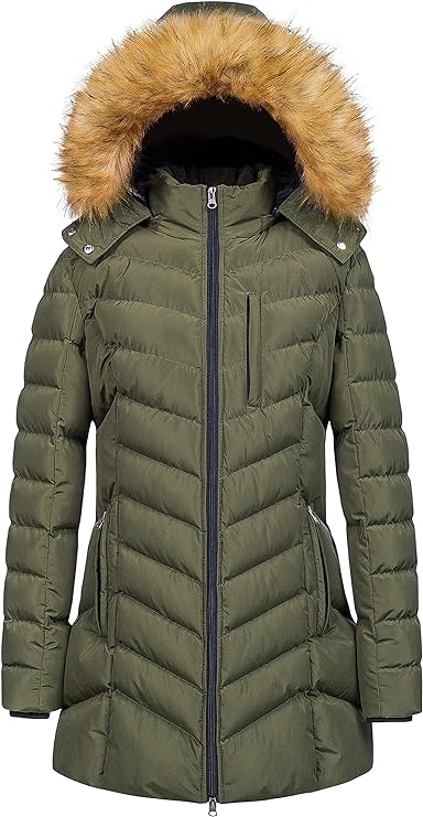 Women's Winter Coat Waterproof Warm Puffer Jacket Long Parka with Faux Detachable Hood