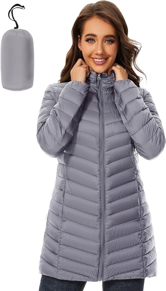 Women Puffer Jacket Hooded Warm Lightweight Packable Quilted Puffer Coat Outwear