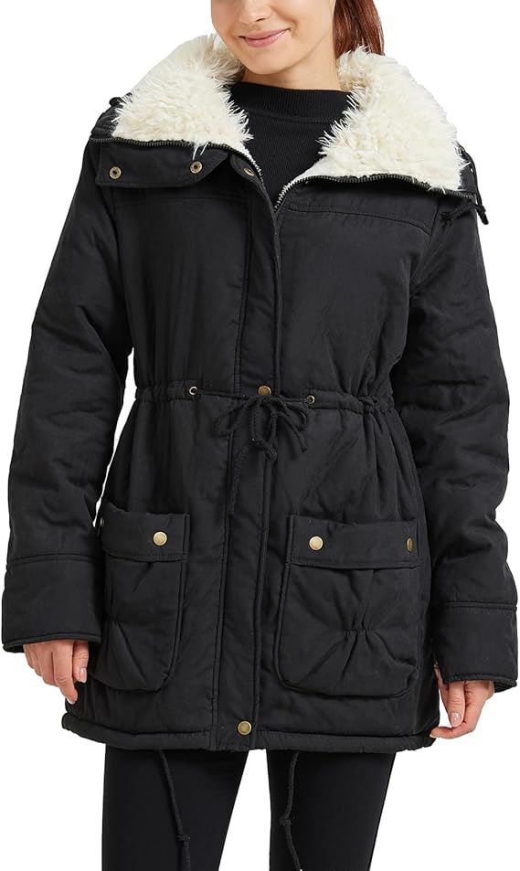 Women's Winter Mid Length Thick Warm Faux Lamb Wool Lined Jacket Coat