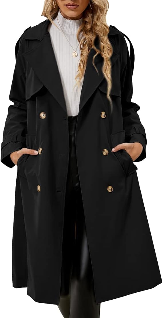 Women's Double Breasted Classic Long Trench Coat Lapel Slim Casual Waterproof Overcoat with Belt