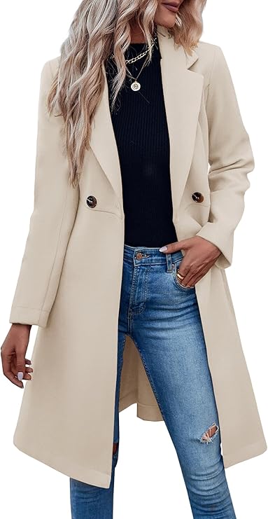 Women's Wool Trench Coat Winter Double-Breasted Jacket with Belts