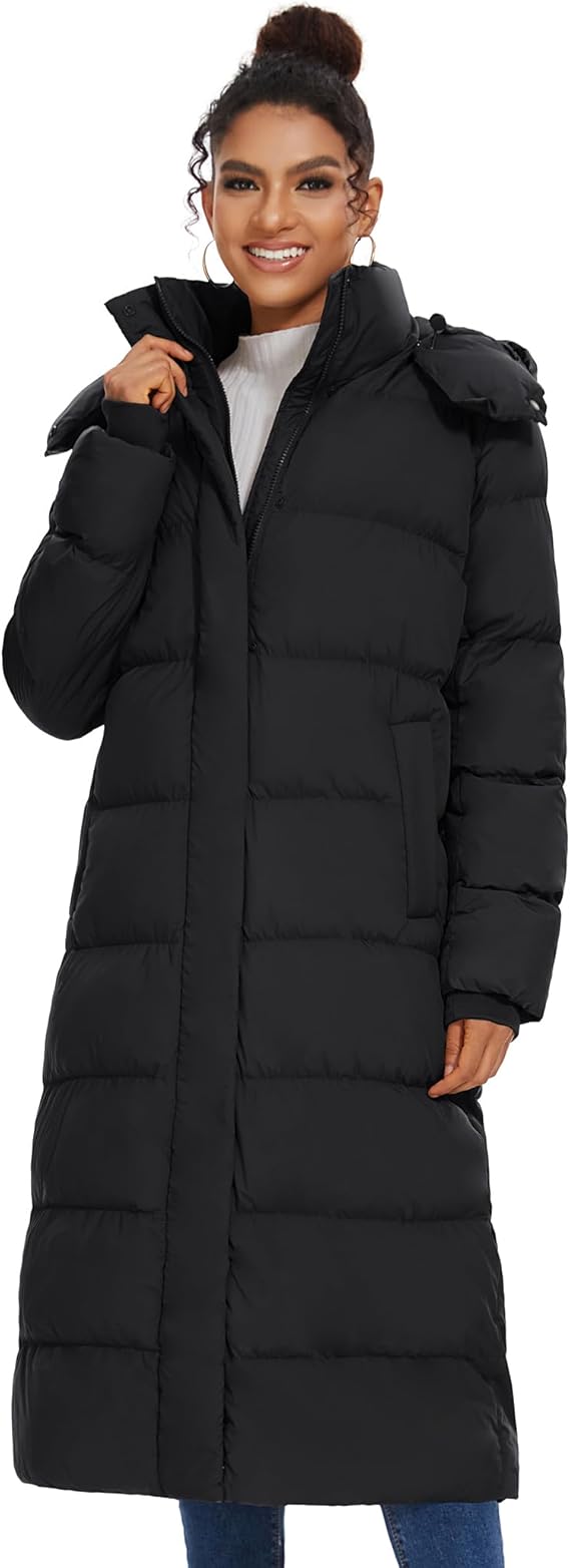 Women's Long Quilted Puffer Coat, Winter Warm Maxi Puffer Jacket with Detachable Hood