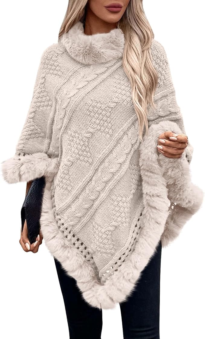 Autumn and winter new fur collar cape shawl Cozy Oversized ponchos for women Shawl Wrap women's loose knit cardigan