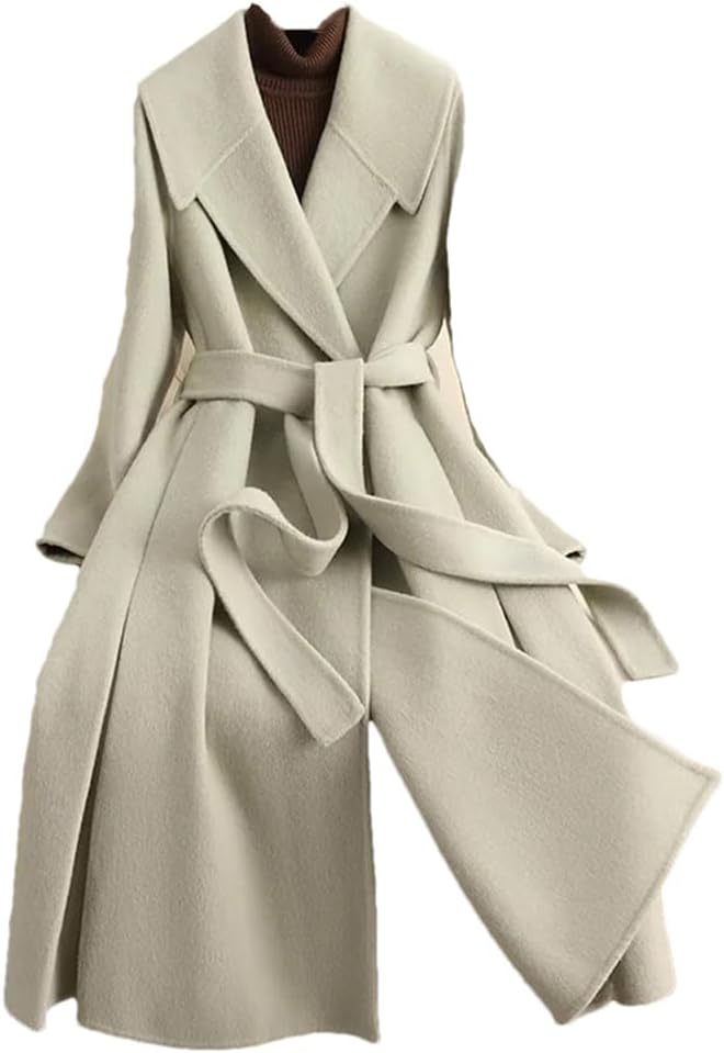 Women's Double-Faced Woolen Jacket Spring Autumn Long Woolen Overcoat Casual Trench Coats Windproof Outwear