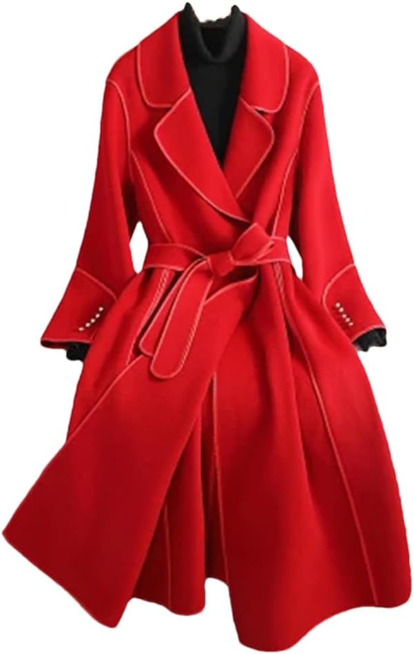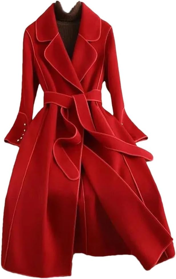 Winter Peacoat for Women's Shawl Lapel Overcoat 2024 Christmas Single Breasted Belted Long Trench Coats