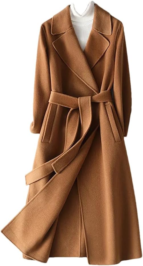 Womens Classic Long Pea Trench Coat Double Sided 100% Wool Overcoat Autumn Winter Solid Elegant Lapel Jacket