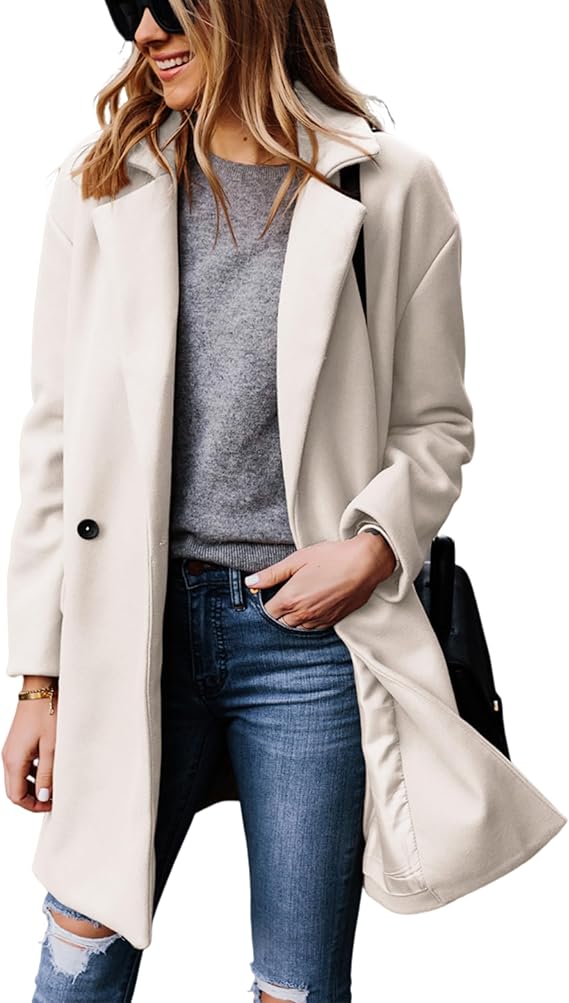 Women's Notched Lapel Wool Coat Single Breasted Pea Coats Winter Wool Blend Blazer Jacket