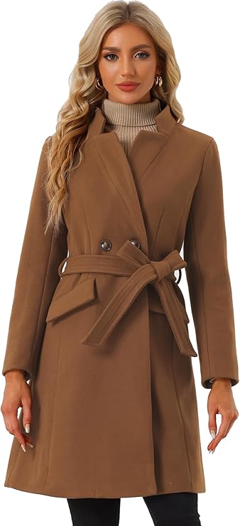Women's 2024 Winter Coat Shawl Collar Belted Single Breasted Overcoats