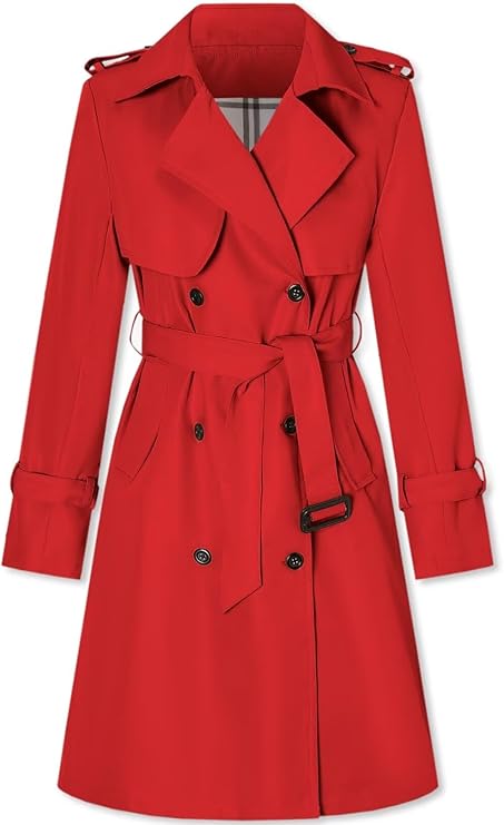 Women's Double Breasted Classic Long Trench Coat Lapel Slim Casual Waterproof Overcoat with Belt