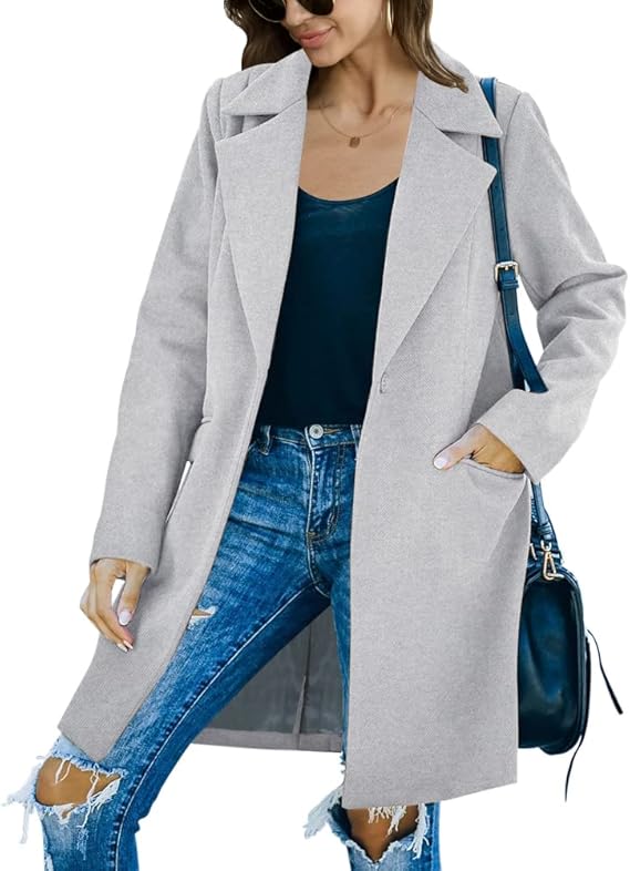 Womens Casual Long Sleeve Wool Blend Pea Coat Lapel Notched Collar Warm Midi Jacket Overcoat