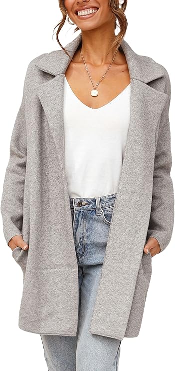 Cozy Coatigan for Women Casual Lapel Long Sleeve Midi Long Blazer Coat with Pockets