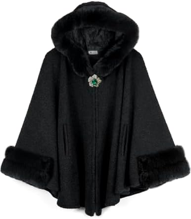 Women's Winter Poncho Cape with Faux Fur Trim & Fleece Lined