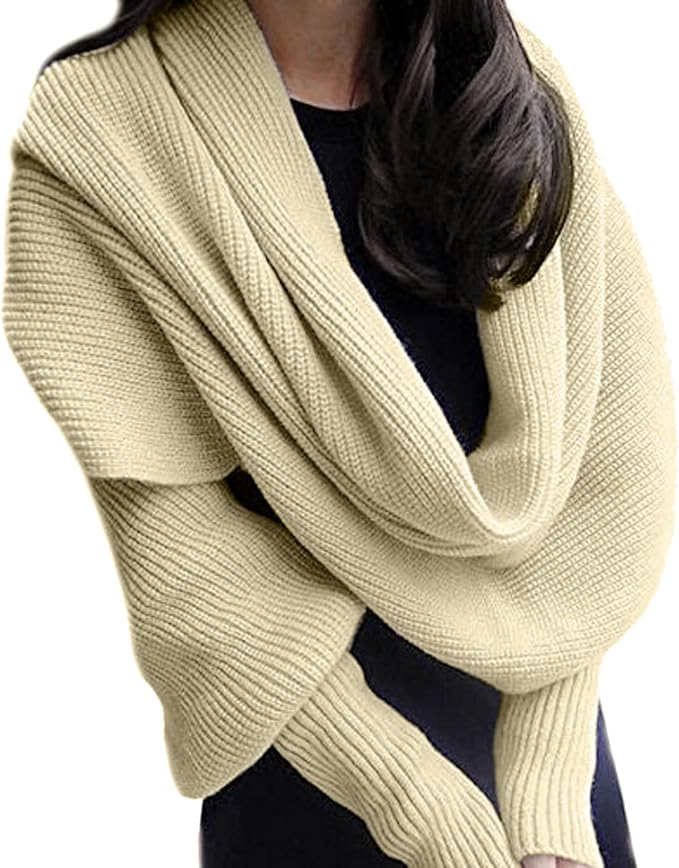 Women Autumn Winter Scarf Wrap with Sleeve, Lady Fashion Solid Color Knitted Wrap Scarf Knitted Shawl Cape with Sleeve