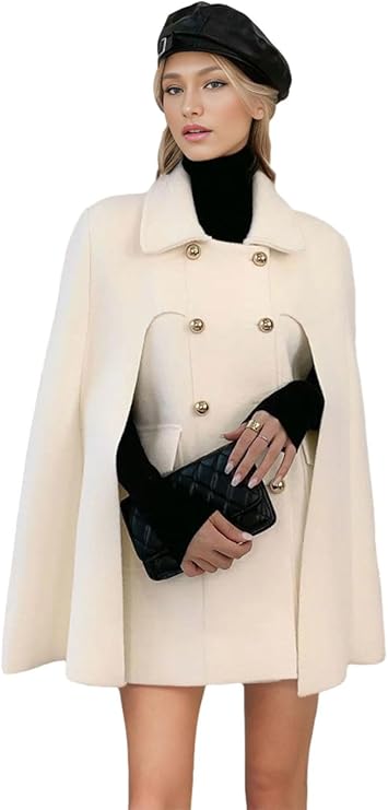 Women's Elegant Poncho Double-Breast Slit Sleeve Flowy Wool Blend Cape Cloak Coat