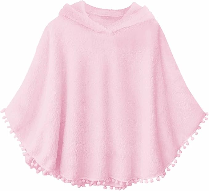 Kids Girls Sherpa Fleece Pullover Hoodies Pompom Tassel Fuzzy Coat Poncho Cloak Hooded Cape