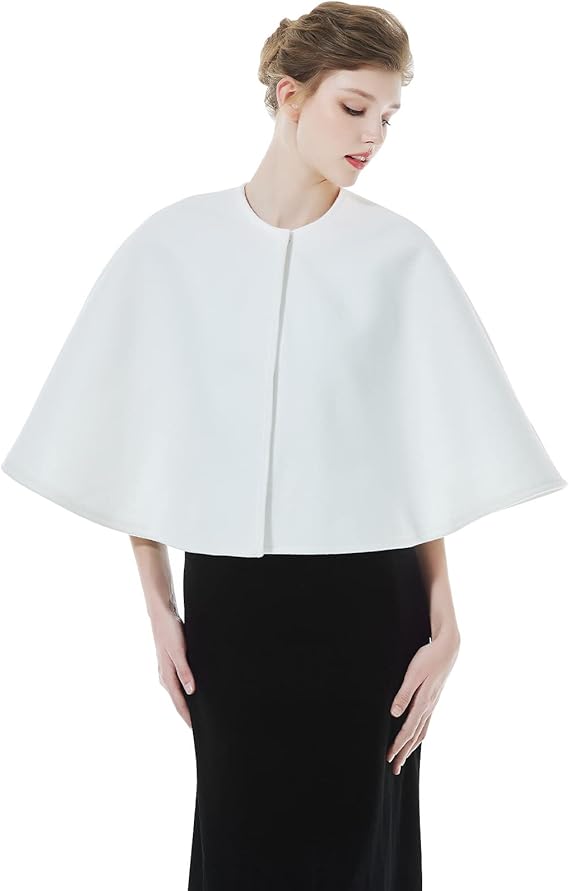Women Wool Blend Cape Cover Up Jacket Coat Spring Autumn Wedding Bridal Shawl