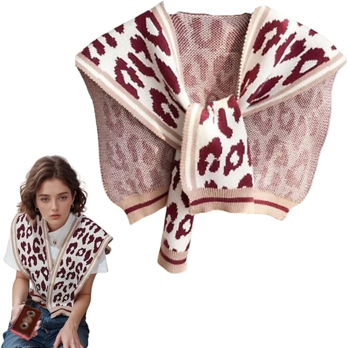 Leopard Color Block Knit Poncho Cape - Women's Blanket Shawl for Spring, Autumn, and Winter Fashion Scarf