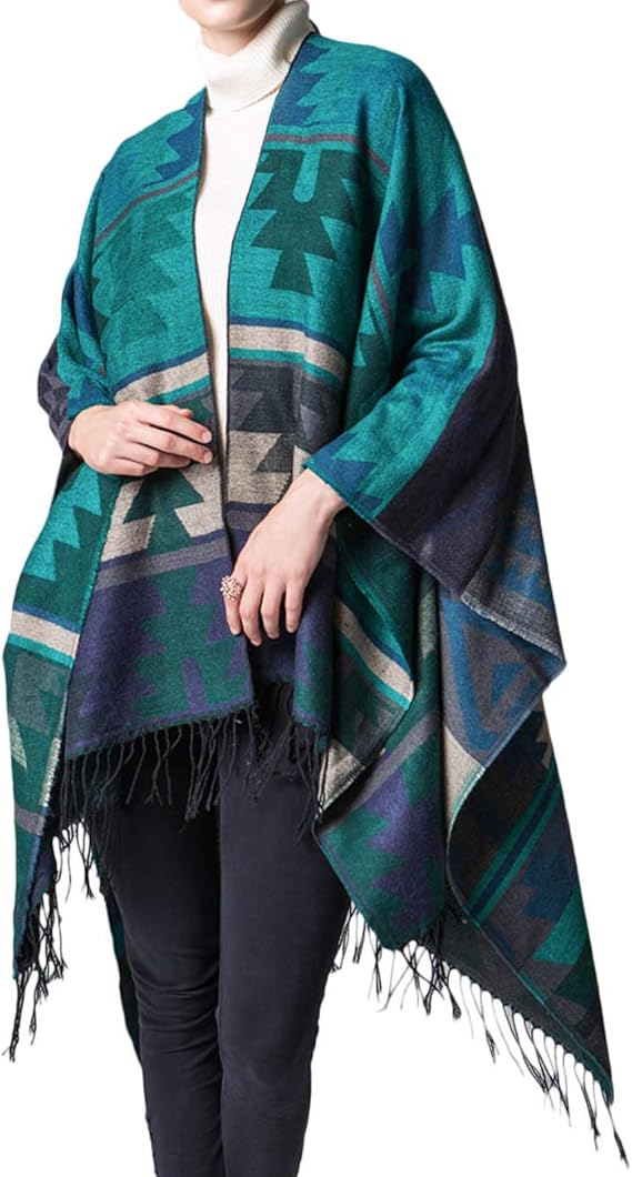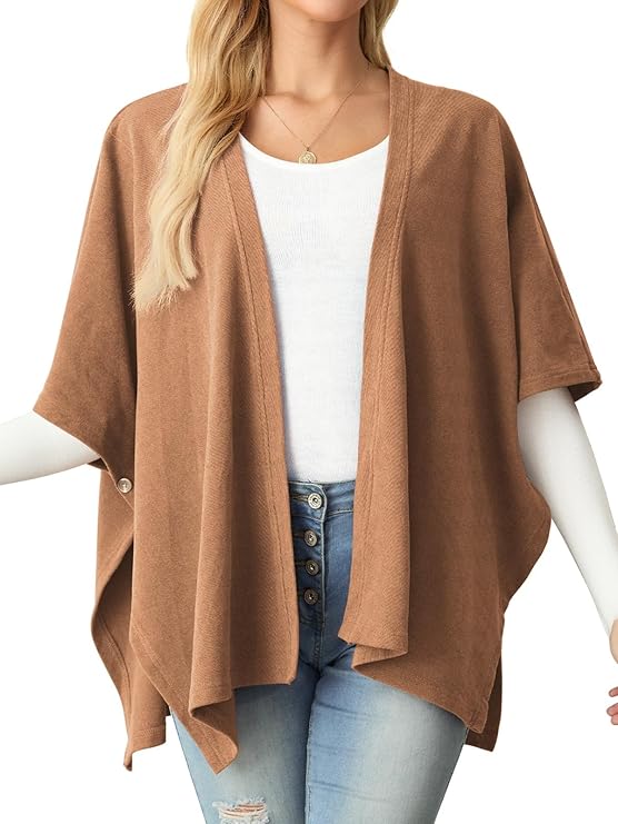 Women's Shawl Wrap Poncho Ruana Cape Cardigan Sweater Open Front for Fall Winter