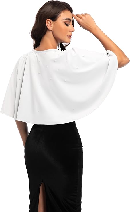 Women's Soft plush Shawl Wraps Shrug stunning pearls for Evening Dress Wedding Cape Cover Up 1920s White Shawl