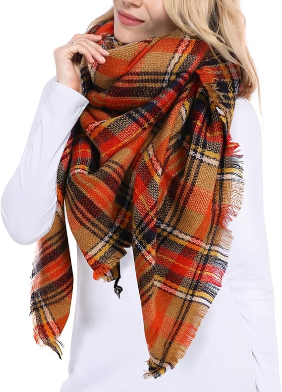Women's Plaid Blanket Winter Scarf Warm Cozy Tartan Wrap Oversized Shawl Cape