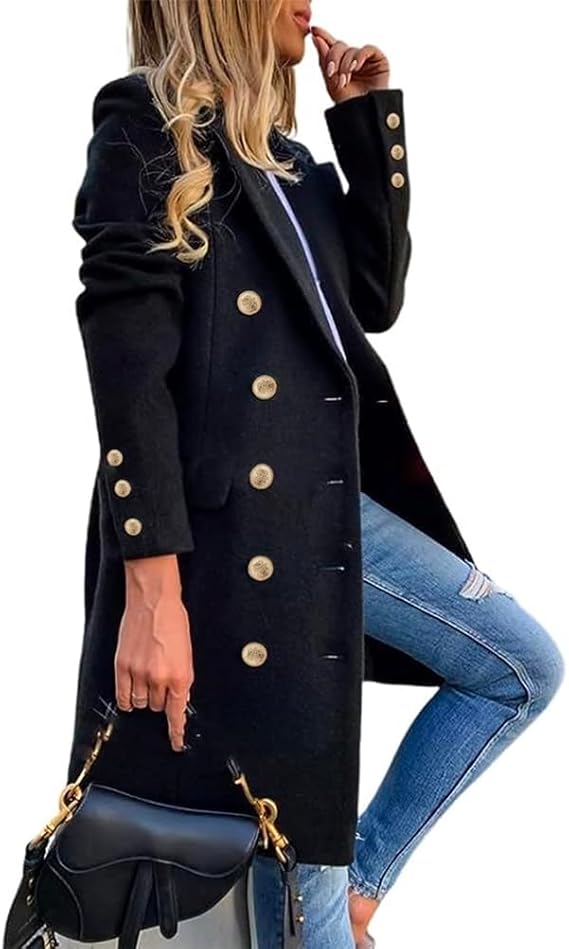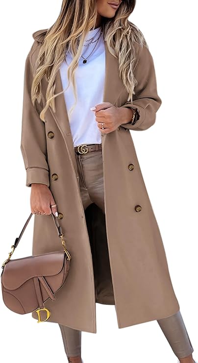 Trench Coat Women – Double-Breasted Long Winter Wool Coat for Women