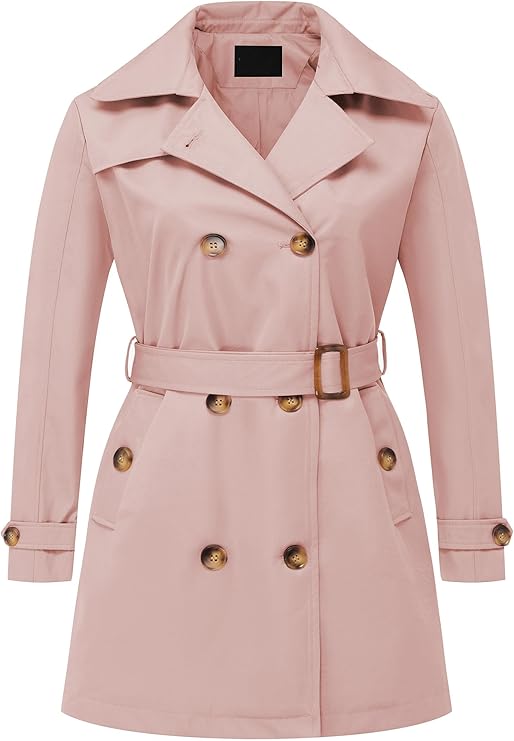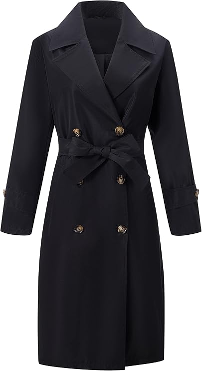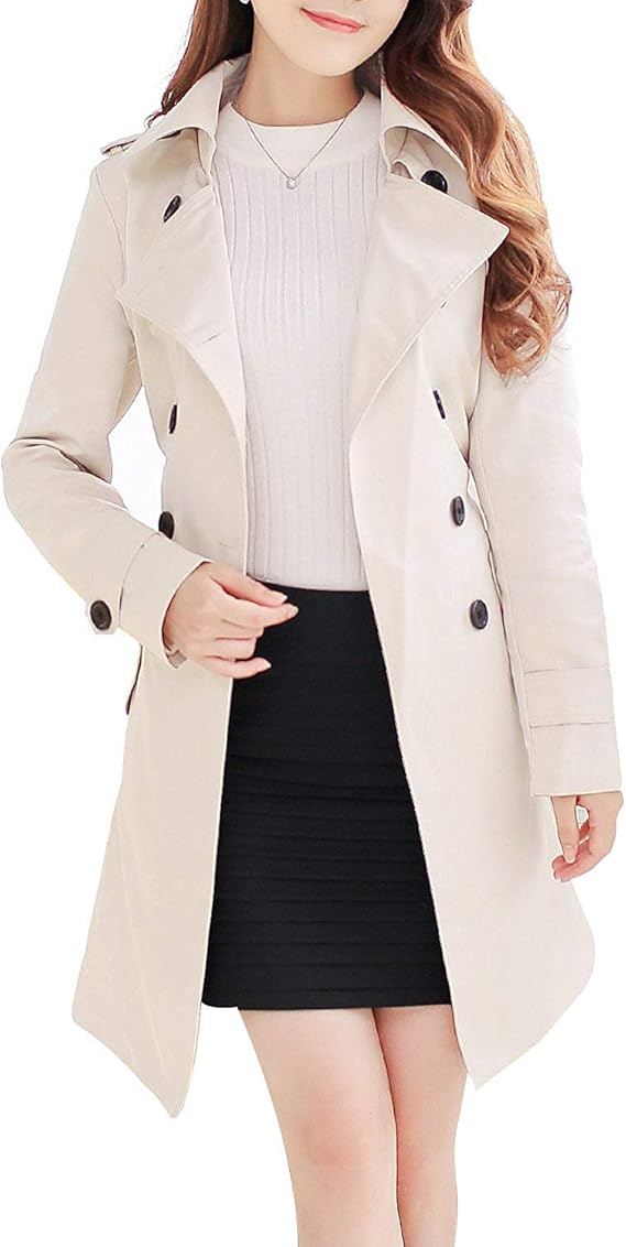 Women's Double-Breasted Trench Coat Classic Lapel Overcoat Slim Outerwear Waterproof Coat with Belt Buckle