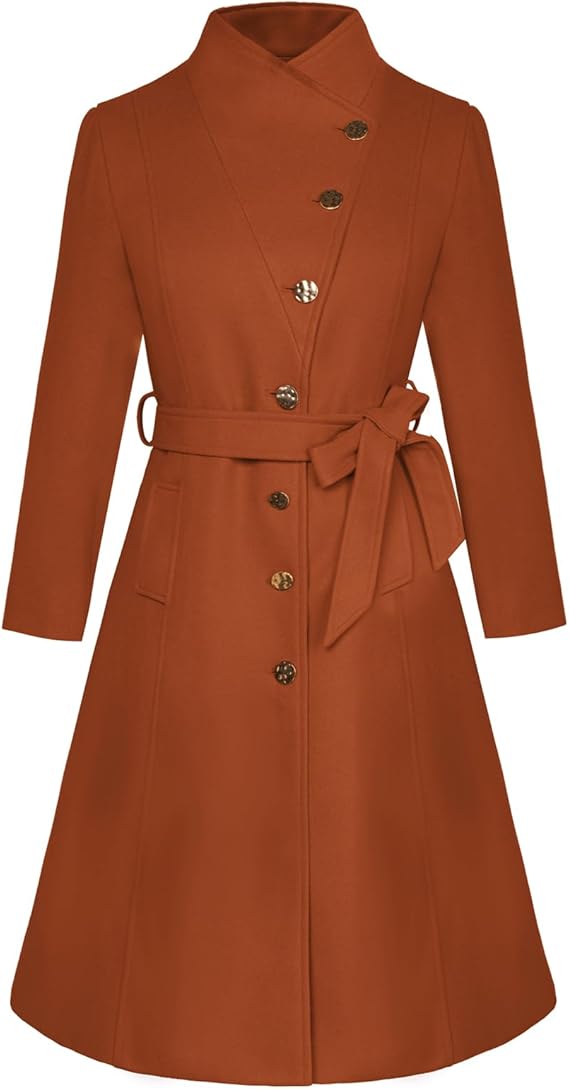 Women's Winter Double Breasted Wool Coat Long Sleeve Notch Lapel Midi Long Winter Trench Coat with Belt