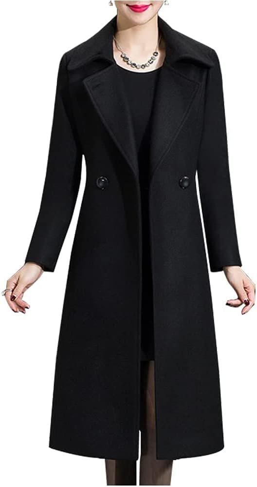 Womens Lapel Peacoat Winter Double-Breasted Outerwear Mid Long Jacket Casual Trench Coat